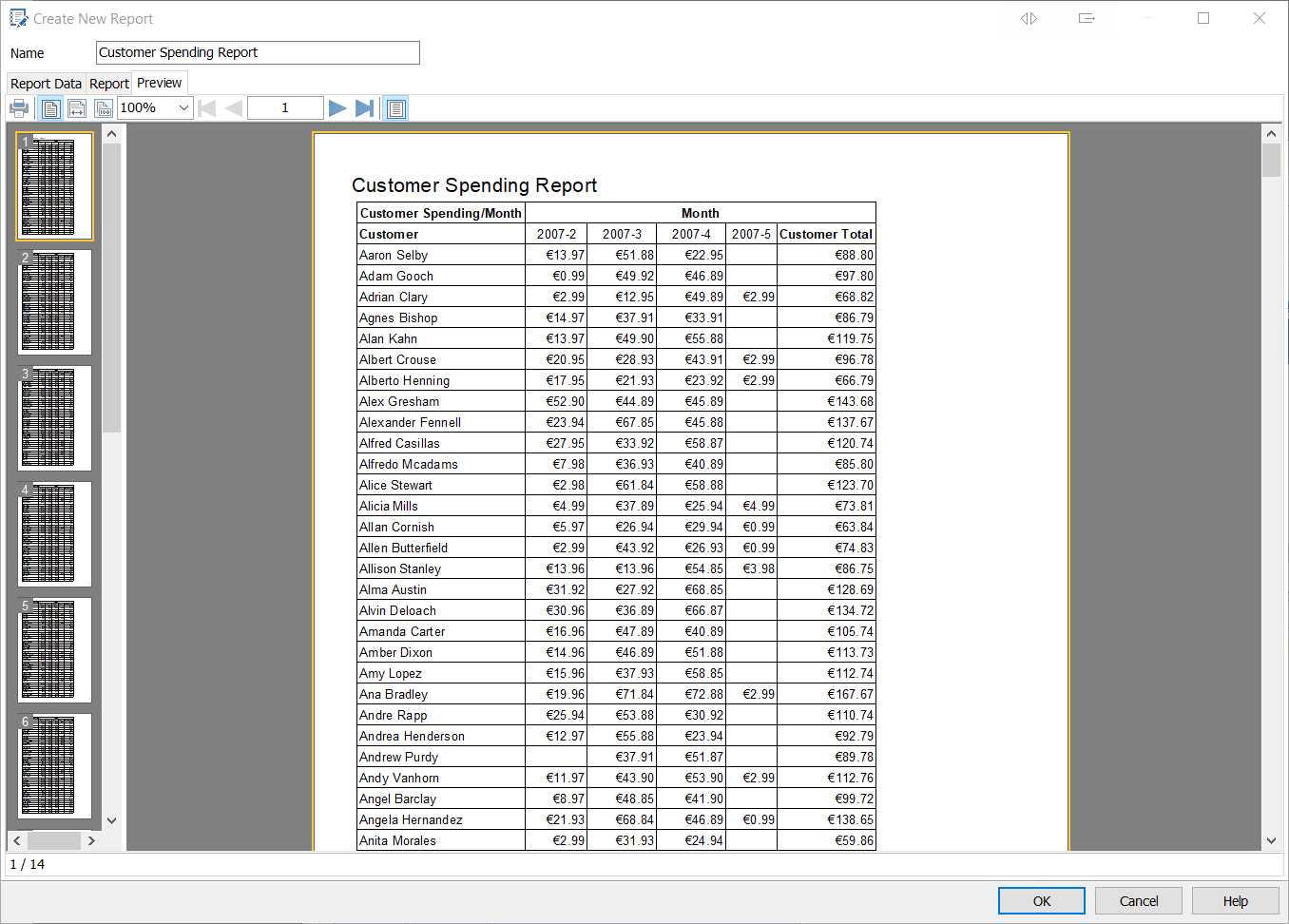 When previewing, a report is fully processed, including all formatting, colouring and so on.