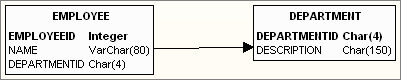 Each employee works at a department, this is a required item. This means that the column for Department will be NOT NULL. It's a non-identifying relationship, so the new column will not be part of the primary key of the Employee table.