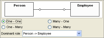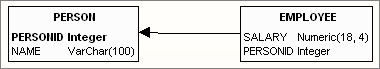 In the above screenshot, you can say that "Person" is over "Employee", without a person, there will be no employee. This will generate a foreign key constraint as follows: