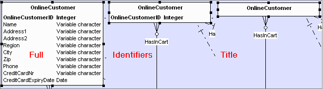 Editor CanvasThe Editor Canvas is the area where you visualize your diagram. It can contain objects (entities, tables and views), links (relationships, foreign key constraints and documentation links), comment boxes and background regions.