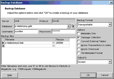 The Backup Database Dialog