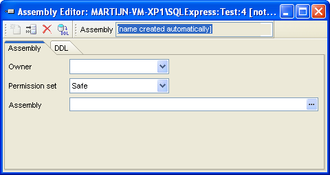 The Assembly Editor offers the possibility to create, alter and drop assembly registrations. If you add or drop an assembly registration, the Assemblies node in the Database Navigator tree-view will display the change as well by adding or deleting the assembly registration from the list.