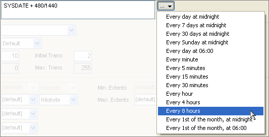 Many options depend on other options. For example, the Refresh Mode dictates whether the boxes in the Refresh Options section are enabled or not. If you enable the Next item, you can enter an expression that evaluates to a date and time value. You can use the button to the right of the control to select one of the pre-defined intervals.