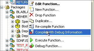 Database Workbench will automatically compile the routine that you will be debugging as the most "outer" routine with debug information as soon as you start the debugger, routines you want to Trace Into, you need to compile with debugging information yourself. Obviously, when compiling a package with debug info, the complete package will contain the debugging information.