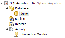 Server AdministrationUnder this node, you can find several items to administer and monitor your Sybase Anywhere server.