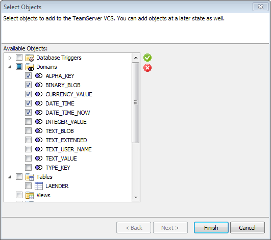 Adding a database project to the VCSIn order to start this, add the database to the VCS on the Workspace tab in the Database Navigator. Use the context menu and select Add Project to VCS. After confirmation, this will show the Select Objects dialog.