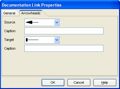 The General page has the name of the documentation link, which is also used as the main caption. The secondary captions will be displayed near the arrowheads of the link.