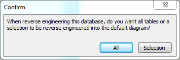 All objects will become available in the lists in the Diagram Explorer, but it depends on the option used if all objects will be added to the Canvas. If you select Selection in the above dialog, another window will be shown, allowing you to select a sub-set of the available tables and views.