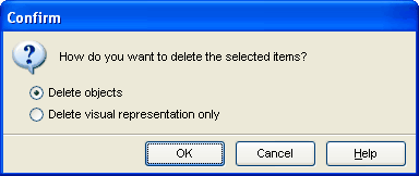 You can select any diagram object and simply press the Delete button in the toolbar or your keyboard, this will remove the visual representation of the object. To delete the object from your design, use the ctrl+DEL shortcut. In a sub-diagram, this will simply remove the visual representation of the object, in the main diagram, you can choose to remove the visual representation of the object from the Editor Canvas or to delete the object completely, that is: it's visual representation in the main and sub-diagrams as well as from the Diagram Explorer.