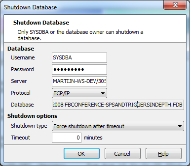 After the timeout has expired, Database Workbench will show you the result of the shutdown attempt. Do take in account that this is "blocking" - Database Workbench will not be available until the timeout has expired.