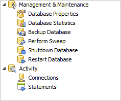 The Database Navigator, in addition to it's standard functionality, offers more when connected to an Firebird database.