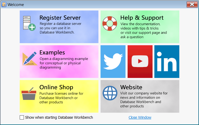 Upon your first start, Database Workbench will ask you to register a server - you need to do this in order to work with Database Workbench. Once you have registered a server and have a list of available databases (this is depended on the type of server you have), you can connect to a database and browse the schema.