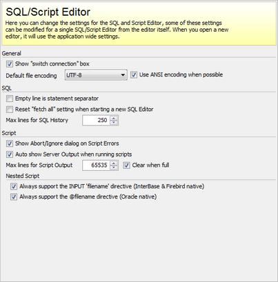 The maximum number of SQL statement to keep around in the SQL history per SQL Editor.