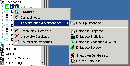 DatabasesThis node lists all registered databases available for this InterBase server.