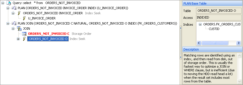 Database Workbench displays the plan analysis for you in a tree if possible, if not possible, in a list as returned by the DBMS.