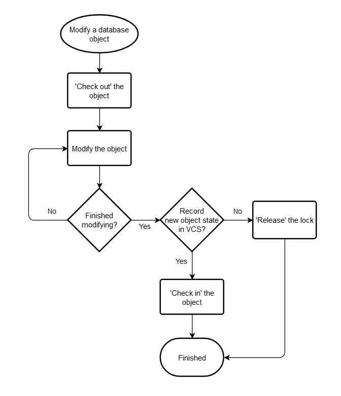 Editing database objectsIf a database object is in the VCS, before you're able to edit the object using the object editor you must lock it so others can't modify the object. Once finished, you can either instruct the VCS to keep a source copy of the modified object, or release it without modifications.