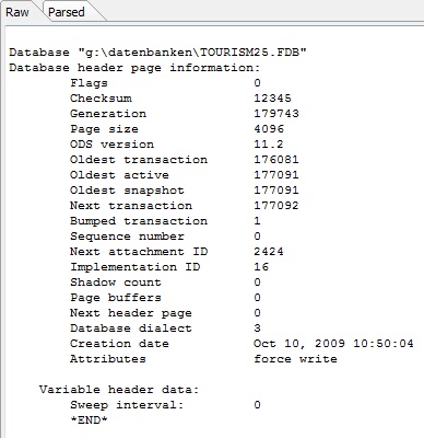 The Header Page Monitoring facility queries the database header page, which allows you to inspect important base settings like forced writes, page size, page buffers etc. of your database.