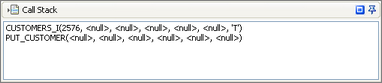 A call stack of 2 routines, PUT_CUSTOMER just called CUSTOMERS_I