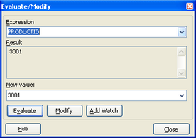 This dialog - use ctrl+F7 to show it - is a powerful dialog to view any valid expression or to modify existing parameters and variables. In order to modify a parameter or variable, enter the name of the parameter in the Expression edit box and use Evaluate - the dialog will show its current value. Next, enter a new value in the New Value box (use ' quotes around string values) and use the Modify button to modify the parameter. The Parameters and Variables window and Watches window will reflect the change as well.