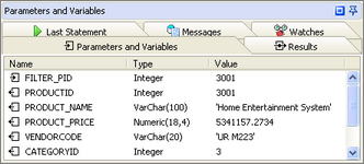 In this window, you will see the current value of any parameters and variables used in the routine. These values will be updated after each statement.